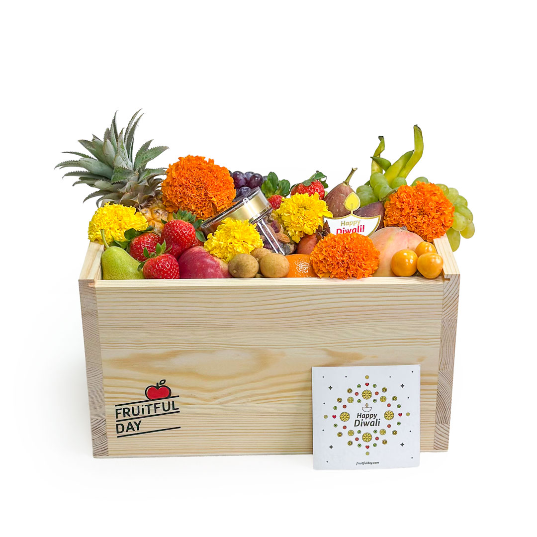 Make your Diwali gifting truly memorable with our Wooden Gift Box, carefully curated to reflect the joy and abundance of the festival. Each box includes a generous selection of handpicked fruits perfectly suited for Diwali, paired with premium nuts and decorated with bright marigold flowers. Elegant and festive, this gift is more than just a box—it’s a symbol of prosperity, gratitude, and celebration.